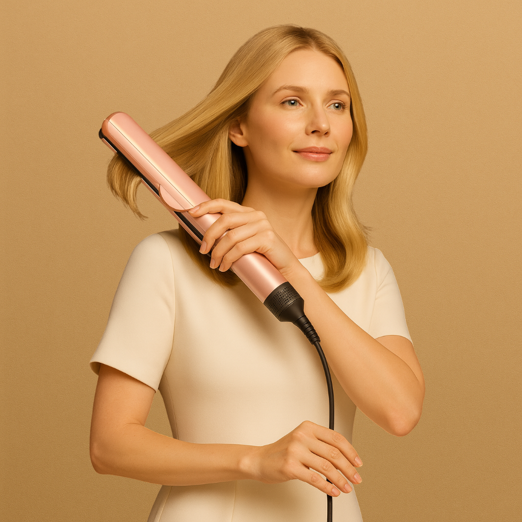 - Glätten ohne Hitzeplatten – Styling mit Luft statt Metall, deutlich haarschonender.